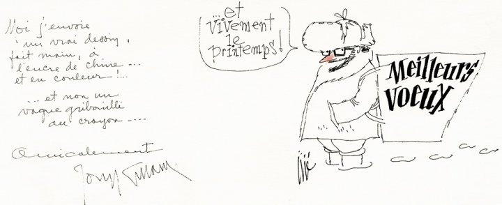 Si "Hergé" trouva que les premiers dessins de "Jijé" s'inspiraient trop de son "Tintin", (" 'Jijé' stop, il faut arrêter de me copier"), Joseph Gillain lui envoya ses Voeux, avec cette mention manuscrite (p.395) : "Moi j'envoie un vrai dessin, fait main, à l'encre de chine... et en couleur !... et non un vague gribouilli au crayon... Amicalement."