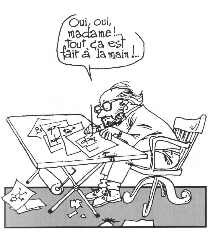 Comme "Hergé" et bien d'autres auteurs, il travailla, notamment, sur la base de photographies, nous confiant (p. 217) : "Il est très intéressant de faire des exercices de dessin en utilisant des photos. On découvre des éclairages auxquels on ne pense pas lorqu'on dessine de mémoire. C'est très précieux. Cela vous habitue à donner un relief aux personnages, aux visages, aux mains, aux gestes..."
