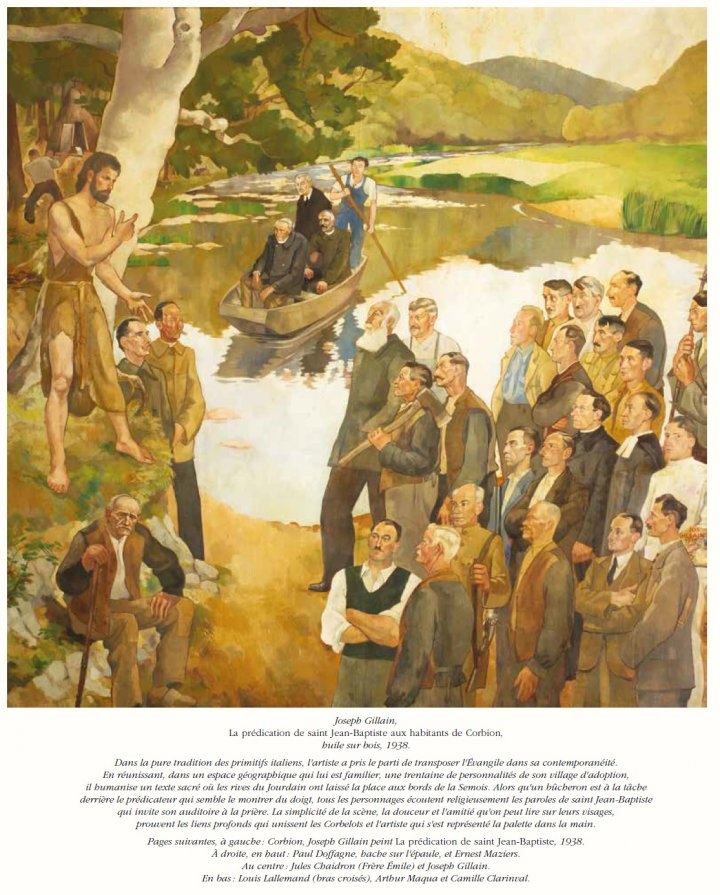 Ayant vécu trois années d'études artistiques, de 1928 à 1931, dans une abbaye, à Maredsous, engagé dans la religion catholique, sa famille comptant deux religieuses et deux prêtres, lui-même ayant été acolyte, nous apprenons (p. 98) de François Deneyer qu' "en ce début d'année 1936, Joseph entamme la réalisation de fresques peintes dans la nef et la voûte de l'église de Corbion. Le travail étant conséquent et nécessitant un système d'échafaudages..."