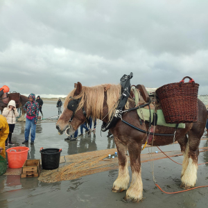 Rendez-vous un samedi à 14h30, sur l'Astrid Plein de Oostduinkerke, avec Eddy D'Hulster, président des pêcheurs de crevettes et tour d'horizon à la mer. Une dizaine de pêcheurs passionnés et passionnants sont présents avec leurs magnifiques chevaux brabançons. Ils s'avancent dans la mer avec leurs chevaux robustes et après une bonne trentaine de minutes, c'est un autre spectacle inoubliable lors de leur retour sur la plage avec leurs hottes en osier remplies de crevettes grises. Ce méthode de pêche, unique au monde et dont la tradition remonte au 15e siècle, a été reconnue patrimoine culturel immatériel par l'Unesco en 2013. Et quoi de plus normal, après ce grand moment, de goûter deux croquettes crevettes au 't Zand face aux deux statues de pêcheurs. Un régal avec une Sint Idesbald blonde !