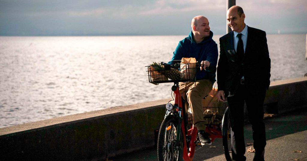 Synopsis : « Dans la ville de Lausanne, Louis est directeur d’une société de pompes funèbres. Célibataire endurci, à 58 ans, il se consacre entièrement à son métier et ne peut se résoudre à prendre sa retraite. Igor, 40 ans, à l’esprit vif dans un corps d’infirme moteur cérébral, livre des légumes bios sur son tricycle pour payer son loyer et passe le reste de son temps dans les livres, à l’écart du monde, avec ses compagnons de route, Socrate, Nietzsche et Spinoza. Par un hasard, qui n’appartient qu’à la vie, les chemins de Louis et d’Igor se croisent. Tous deux prennent la route des Cévennes, … à bord d’un corbillard … »