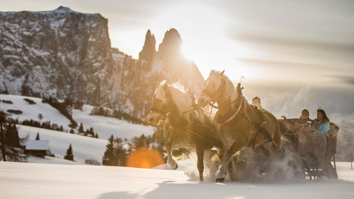 Le Sud-Tyrol est célèbre pour ses chevaux costauds de race Haflinger. Ils vous emmèneront en balade en calèche, à la découverte des paysages de montagne. Une promenade romantique pour se ressourcer et se détendre. Pour traverser les paysages enneigés tel un prince ou une princesse, rendez-vous à Hafling/Avelengo. Les chevaux sont d’ailleurs originaires de cette région. À Eggental/Val d’Ega et à Seiser Alm aussi, vous glisserez au milieu des montagnes au pas rythmé des sabots des chevaux.