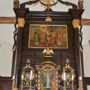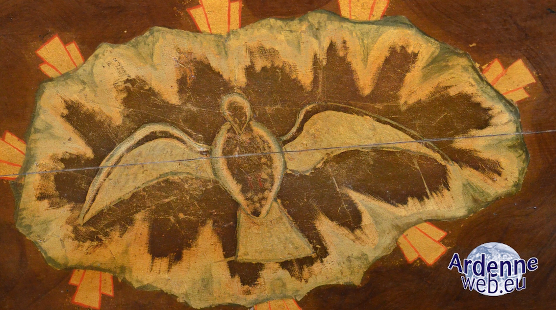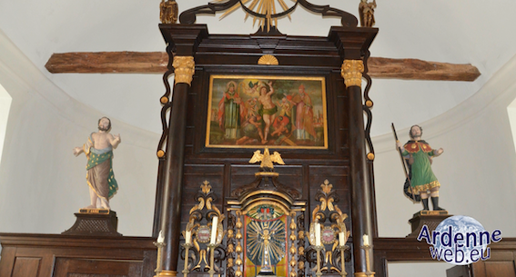 A l’intérieur du clocher se trouve un vrai trésor, une cloche fondue en 1700 par Joseph JORIS, maître fondeur de Saint Hubert. Ici, il n’y a rien d’électrique, on sonne encore à la corde comme autrefois. Ce sont là trois siècles d’histoire qui vibrent dans l’air pour annoncer une messe.