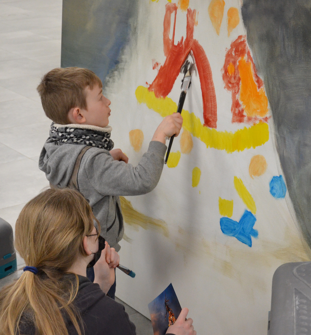 Afin de vous sensibiliser à la pollution du plastique, Marie-Elise partageait son expérience d'artiste sur une toile avec de jeunes enfants en vacances de carnaval à Vayamundo à Houffalize. C'est dans le cadre d'une exposition permanente consacrée à plus de 60 ans de peinture que l'artiste Marie-Elise Meyers terminera une grande toile sur la thématique "Ghana, poubelle des textiles du monde", inspirée du photographe Fabrice Monteiro, le mercredi 16 mars avec plusieurs enfants déjà inscrits pour collaborer à l'activité. Marie-Elise aura partagé avec les enfants pendant plus d'un mois une initiation aux techniques de la peinture à l'huile sur toile comme le célèbre Rubens. C'est une photo de Fabrice Monteiro publiée dans Paris Match qui servira de modèle pour les enfants.