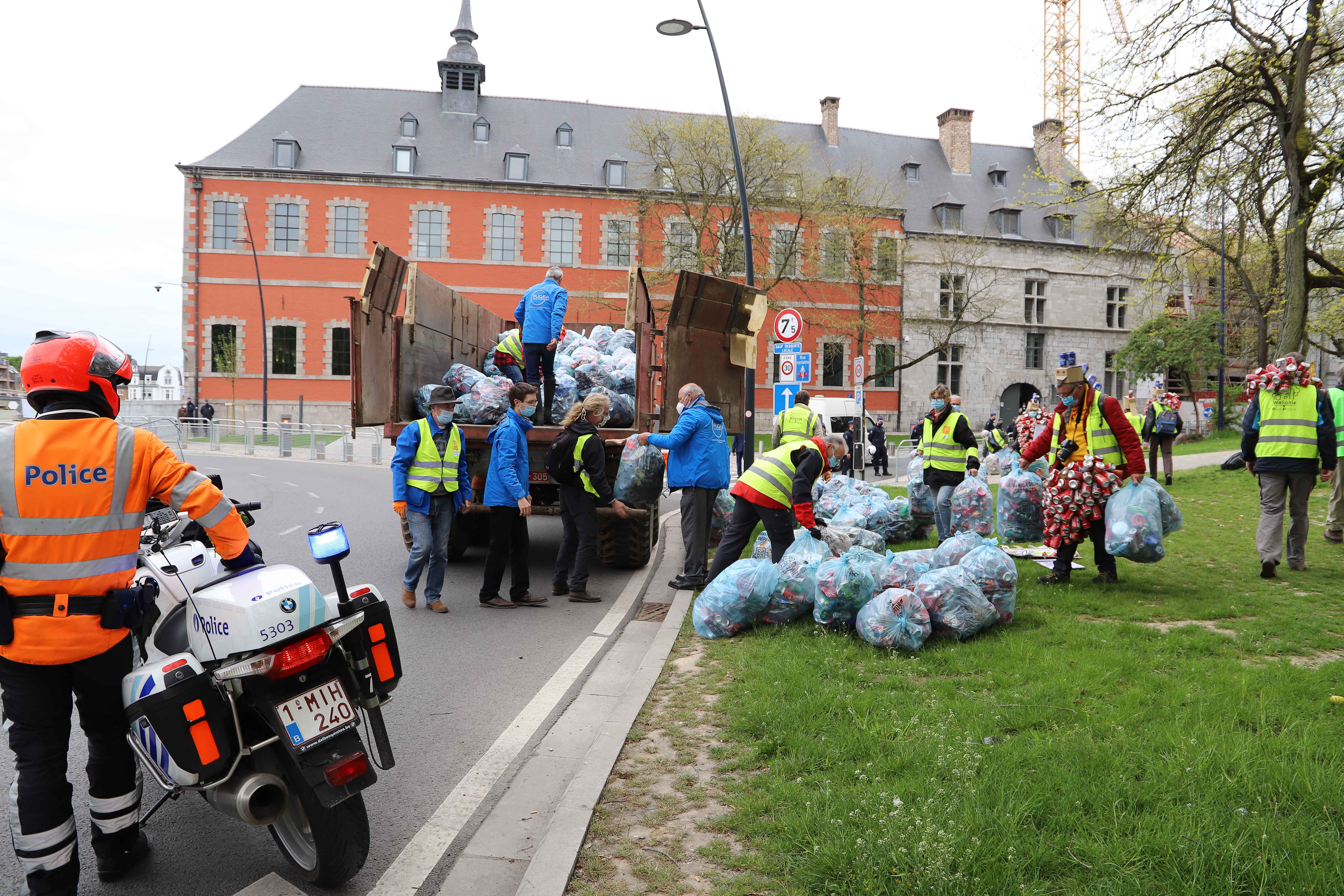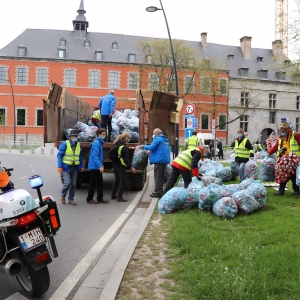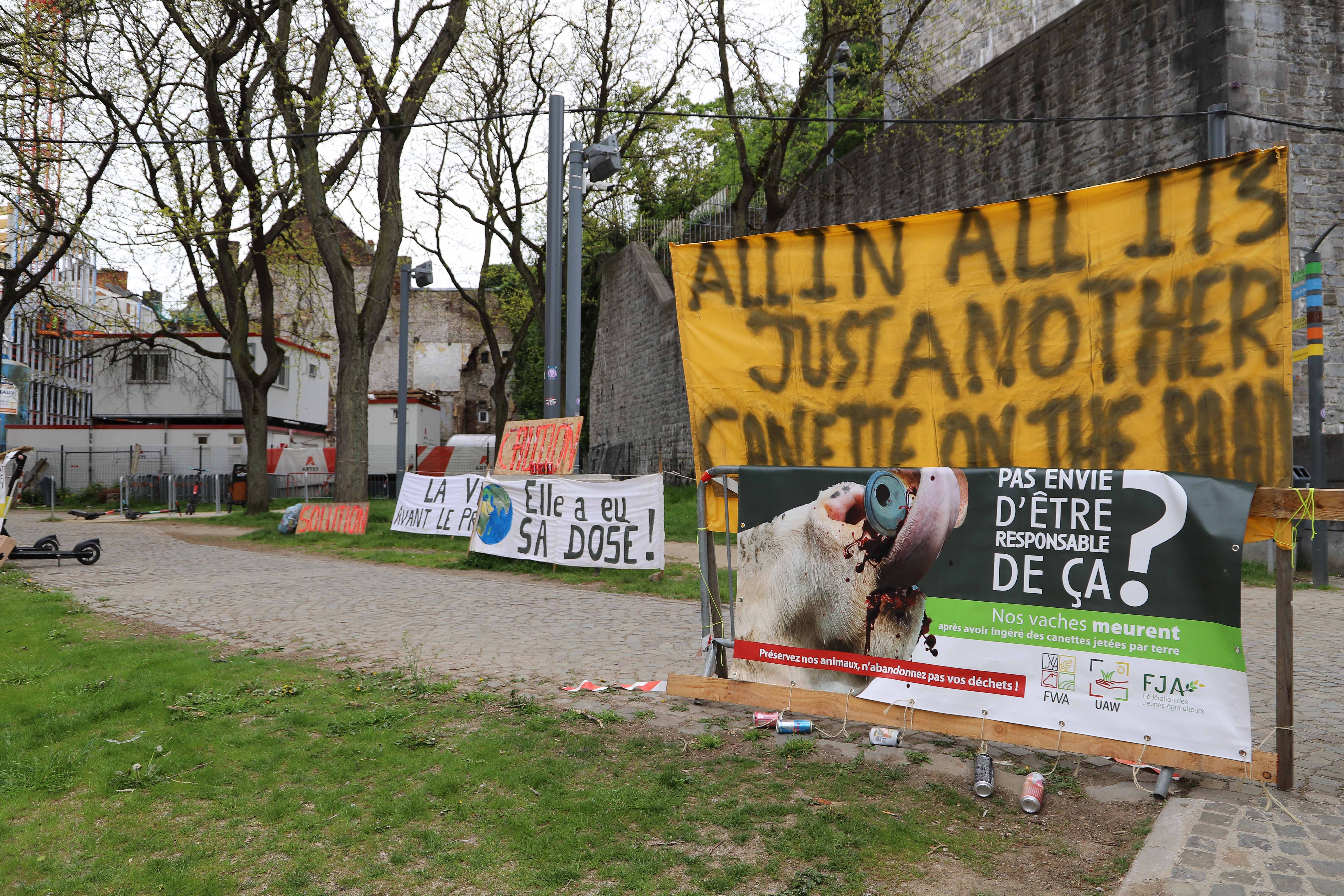 Les manifestants dont des représentants de plusieurs organismes (entre autres des paysans qui en ont assez de voir leurs vaches mourrir car elles ont avalé des morceaux de canettes), ont déversé 16.000 canettes devant le parlement wallon.