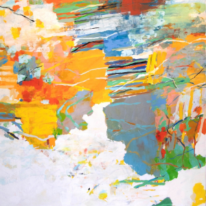 « Le choix des formes » : Se retourner pour regarder la peinture de Stephan Laplanche, c’est s’assurer de certaines constantes dans le geste du peintre. Une peinture qui opte pour une couleur solide, non sans transparence, formelle, avec des errances, indicielle aussi : la couleur pointe vers des choix d’existence. On délaisse rapidement le disque, peut-être en ce qu’il appartient trop aux maîtres :Twombly, Dubuffet, Kandinsky. La couleur s’expose progressivement dans des formes moins sûres, qui dialoguent avec le trait, en- deçà d’une écriture. Laplanche pose des masses qui tâchent notre œil de façon indélébile. Cette exposition retrace une partie de son inscription dans la peinture depuis 1998 et nous donne à voir sa touche qui lui est propre. Un aplat de peinture dynamique, conséquent, irrégulier, reconnaissable. C’est l’alphabet du peintre, sa touche si vous préférez.