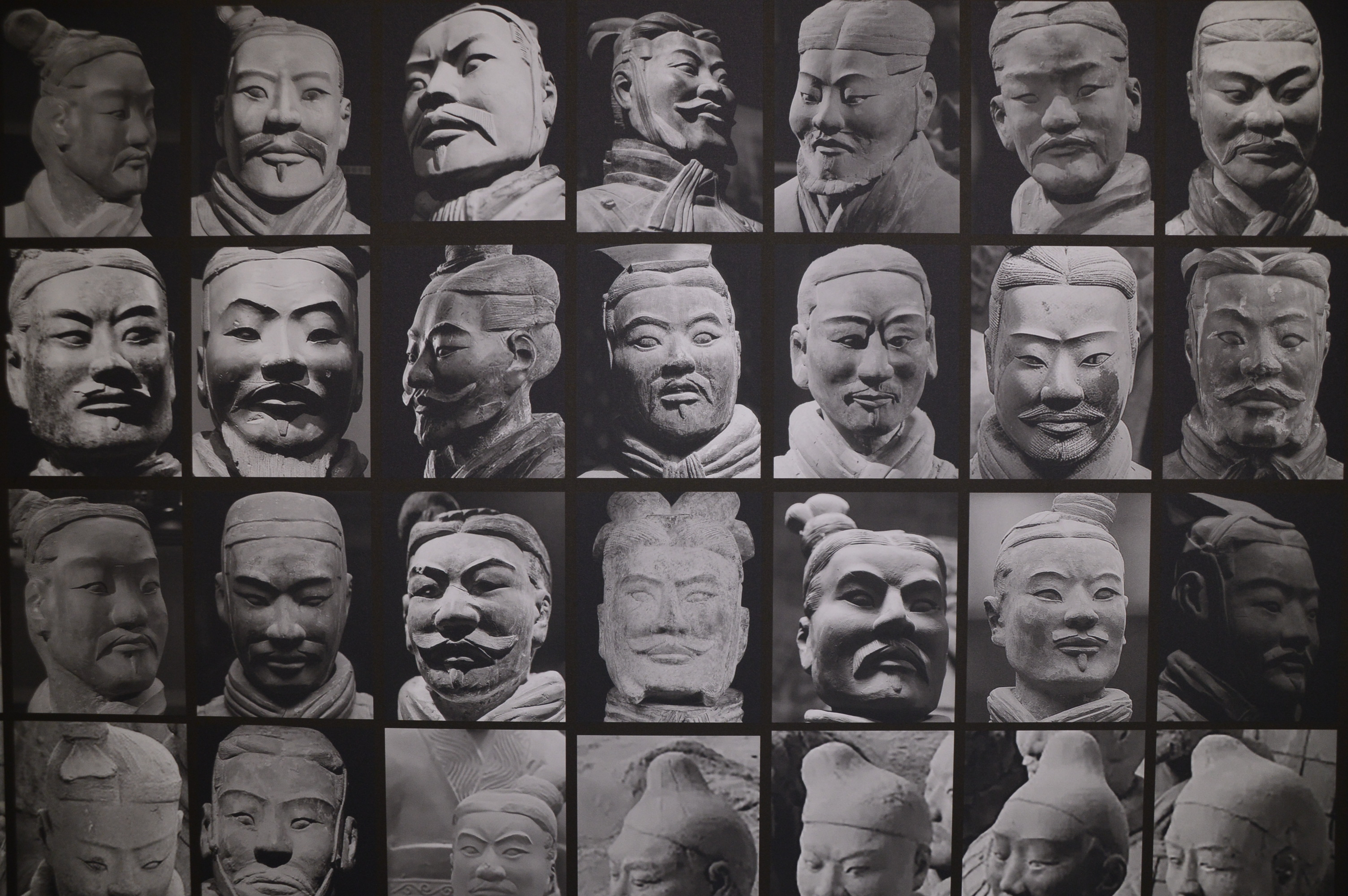 Chaque guerrier porte une expression faciale, une humeur et un «état de vigilance» différents. Mater dit : "Chaque statue a un trait spécifique". Leurs cheveux sont différents, car les styles de cheveux de chaque combattant sont importants pour montrer à quel rang il appartient ».