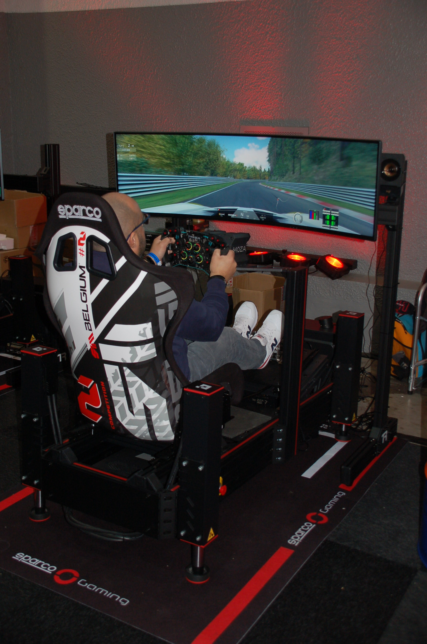 Le simulateur automobile monté par SimBelgium est déroutant au premier abord au vu de la mobilité du siège, surtout lorsque l'on n'est pas habitué, mais il suscite l'intérêt (tous les simulateurs étaient utilisés). Le jeu testé était Asetto Corsa. Le volant n'est pas un exemplaire issu de la marque "Fanatec", bien connue des connaisseurs, car introuvable suite aux délais de livraison, c'est un "Moza racing" qui est utilisé, de toute façon il s'agit d'un produit haut de gamme. Malgré le plaisir jubilatoire de conduire dans son salon, gardez à l'esprit que ce simulateur est fait pour la simulation (et non les jeux d'arcade) car à près de 20.000 € l'unité (l'installation à domicile est comprise dans le prix), il faut s'assurer de pouvoir l'amortir. Mais à défaut d'acquérir le simulateur, il est aussi possible pour un employeur d'organiser des "teambuilding" sur le site de SimBelgium, au Sim Racing Center à Merchtem où vous pourrez tenter de vaincre vos collègues au volant sans risquer un séjour en hôpital!