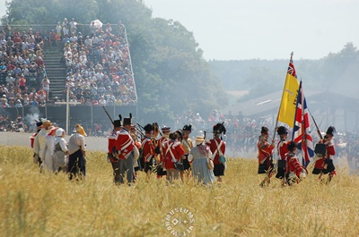Le guide du spectateur insiste bien sur la nécessité de boire au vu des fortes chaleurs. J'ai vu trois reconstitueurs sortir du terrain suite à un coup de chaleur, pas étonnant vu l'épaisseur des uniformes.
