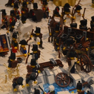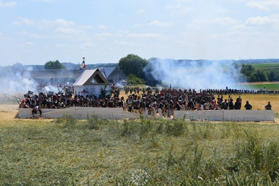 L'espace montra quasiment deux batailles en une, pour tout voir il fallait avoir accès aux multiples tribunes. Je me suis contenté d'une des deux batailles (Anglais contre Français tandis que l'autre couvrait le conflit entre Prussiens et Belgo-Hollandais contre Français) tout en pouvant observer une troisième au centre de l'immense plaine où l'on montra un bâtiment en feu (une ferme occupée par les Anglais, prise en partie par les Français avant d'être reprise définitivement par les Anglais).