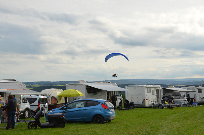 Eric Jonkeau fournit le minimum de survie: l'eau, l'électricité et même les toilettes. C'est un véritable terrain d'aviation avec camping ou se retrouvent des caravanes, mobil-homes et campeurs, tous équipés de leurs vélos mais aussi de leur "drôles d'oiseaux".