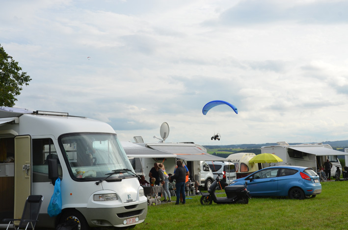 Venus principalement des Flandres et d'Hollande, ces parapentistes décolent sur les hauteurs d'Houffalize, une organisation de PMSA," Paramoteur sports federation".