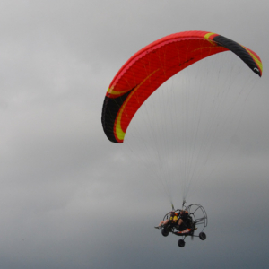Une aile de parapente, un moteur, une sellette, une hélice et une cage, le paramoteur est l'objet de la liberté par excellence. Composé d'une aile de parapente et d'un moteur disposant d'une hélice, le paramoteur est simple à piloter. On gonfle l'aile au dessus de la tête en trottinant, plus ou moins vite selon la force du vent, puis on met les gaz de façon à ce que le moteur nous aide dans notre course, tout en vérifiant au dessus si l'aile est correctement gonflée.