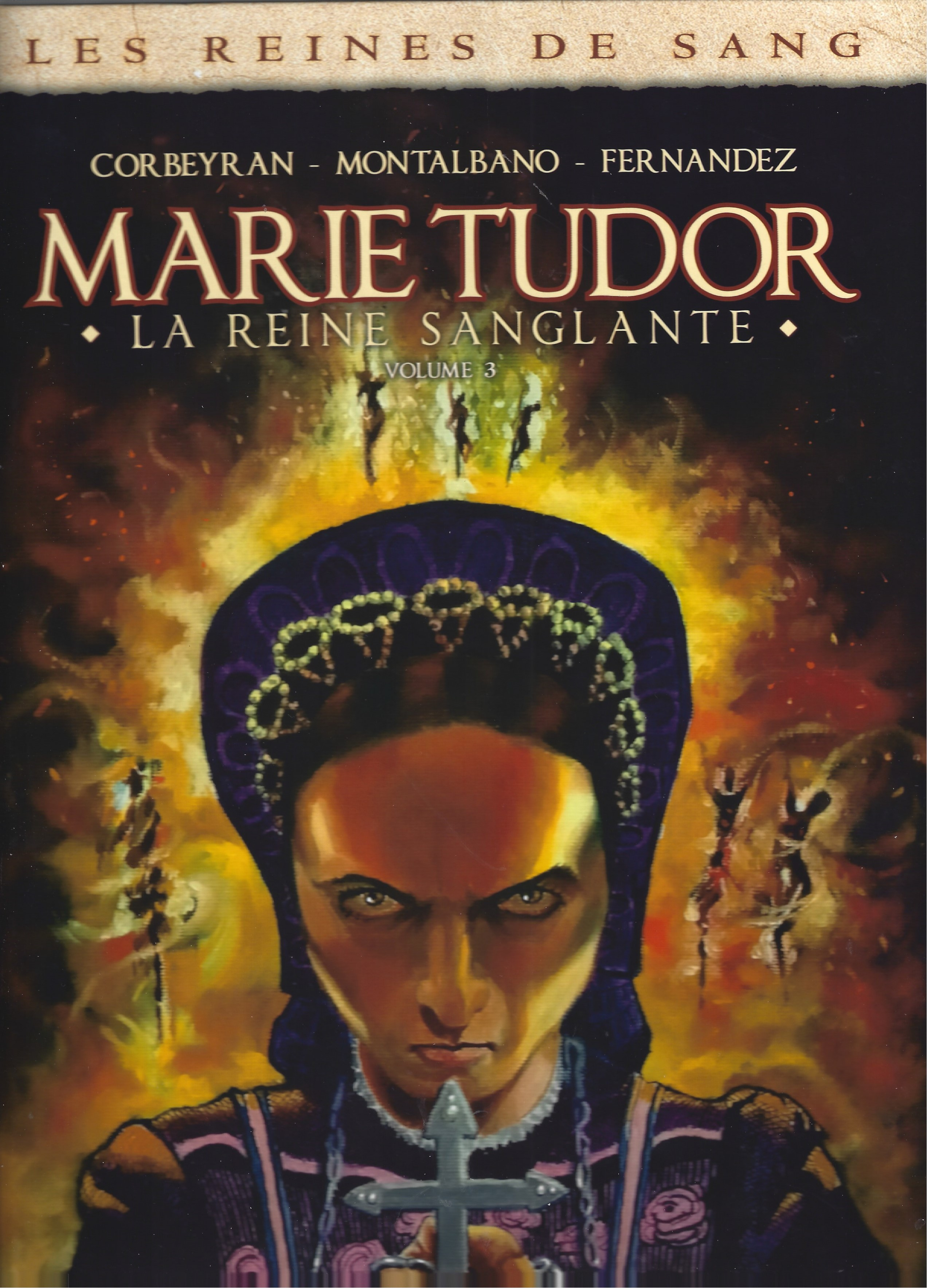 La présence de Marie Tudor, première reine régnante d'Angleterre, est plus que justifiée au sein de la collection des Reines de sang puisque le surnom que l'Histoire lui a attribué n'est autre que Marie la Sanglante...