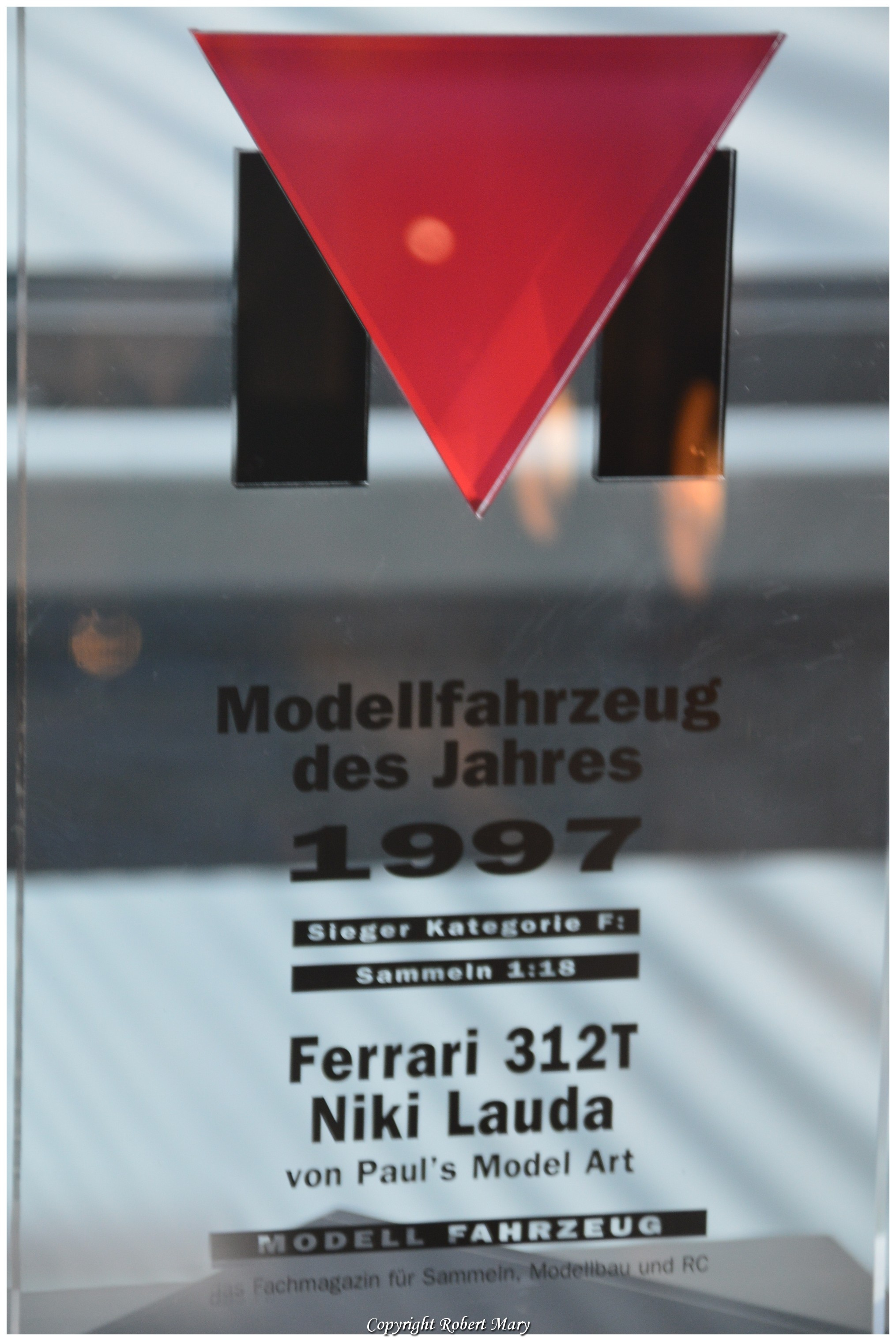 Le musée rappelle des moments agréables à l'éternel enfant que je suis même si le visiteur s'adresse d'abord aux collectionneurs. Les modèles sont bien exposés dans de nombreuses vitrines destinées à les mettre en valeur. Une vitrine est d'ailleur consacrée aux prix reçus par Minichamps de la part de magasines spécilisés en modèles réduits, ainsi Minichamps reçu en 1997 le prix du meilleur modèle réduit pour la Ferrari 312T de Niki Lauda.
