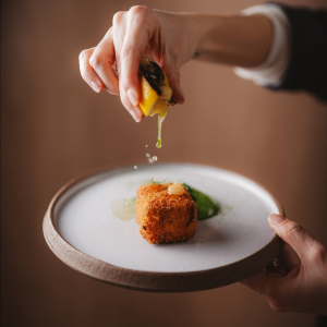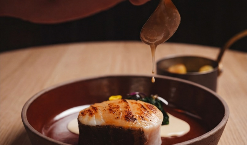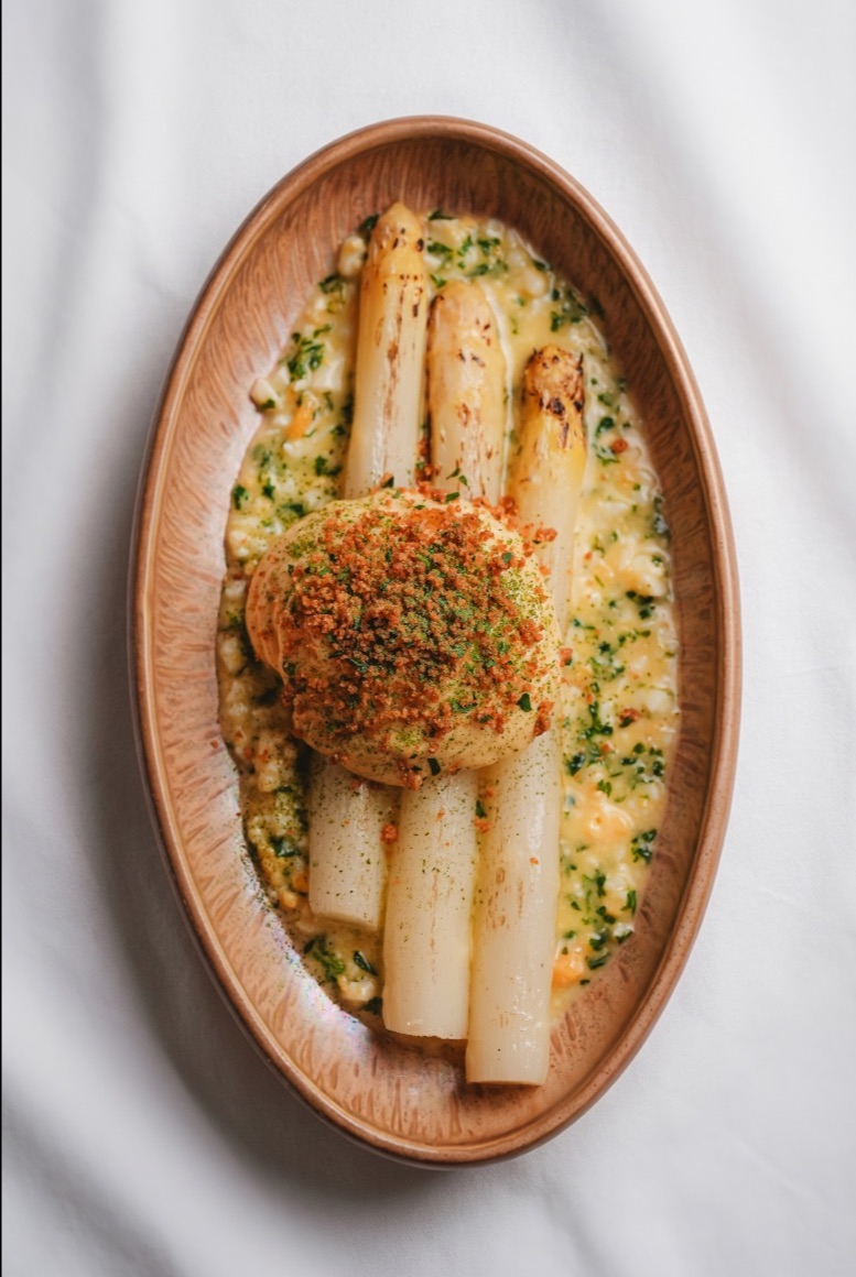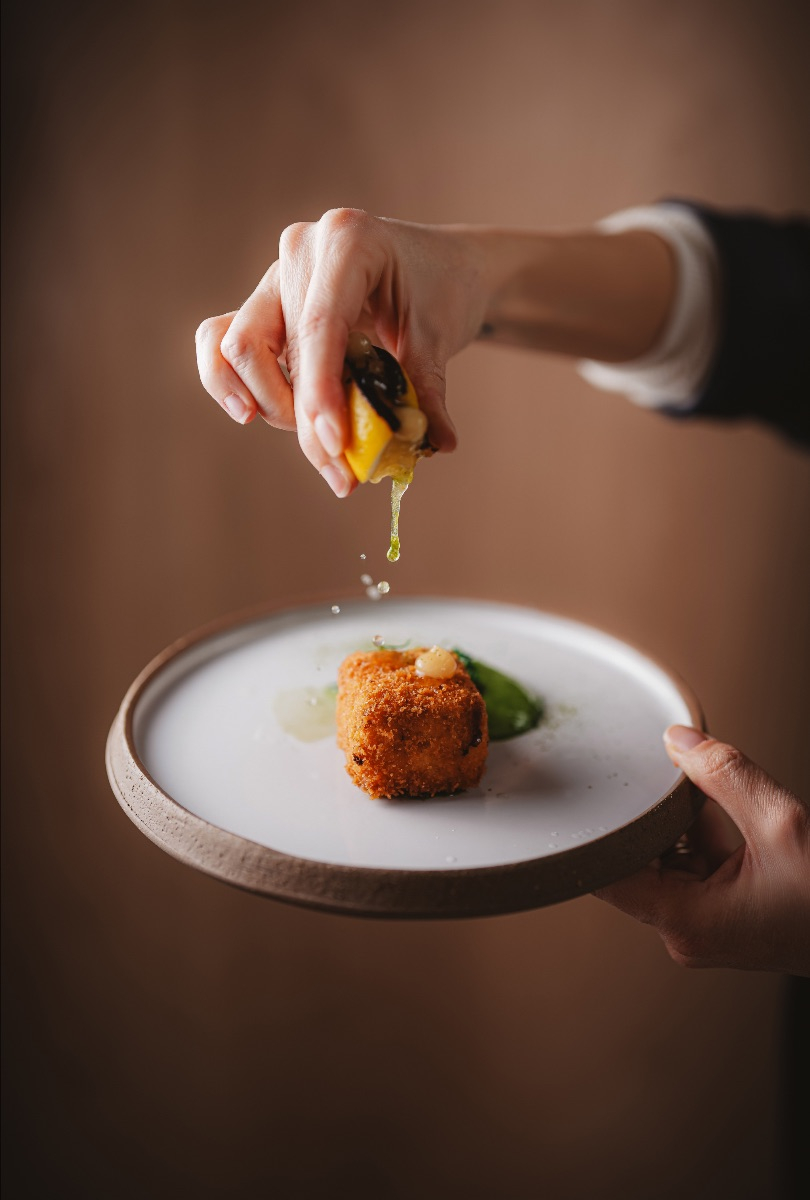 Le pari est délicat entre tradition et multiples influences. Mizaru choisit la voie de l’équilibre celle des repères familiers tout en les déplaçant légèrement. Un vol-au-vent de coucou de Malines se teinte ainsi de Tom kha kai et de galanga, tandis que les croquettes s’habillent de citron confit, de saké ou de nuances d’Asie. Même les escargots s’offrent une relecture inattendue avec miso blanc et focaccia au sésame noir. Résultat ? Une cuisine lisible et généreuse, mais traversée de nuances nouvelles. Rien n’est démonstratif, tout est dans le détail.