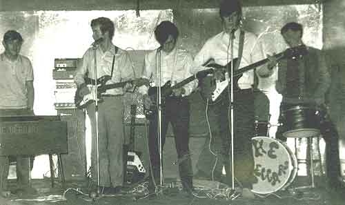 Photo illustration. Un orchestre de jazz contemporain des Rolling Stones, The Beggars (Houffalize 1966): Marc Tagnon (orgue), Philippe Tillière (guitare), Jean-Marie Lesage (guitare), Georges Lesnino (guitare), Alain Wathelet (+) batterie.