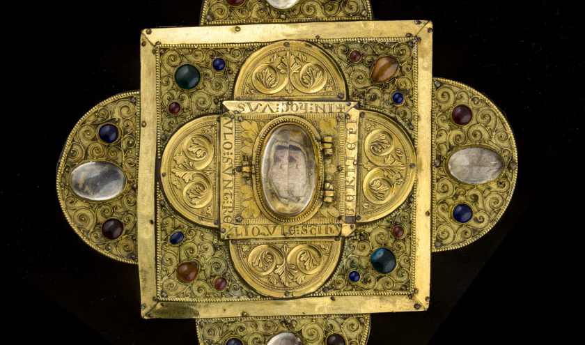 Parmi les oeuvres exposées, soulignons la présence de pièces d’orfèvrerie religieuse de haute valeur, réalisées par Hugo d’Oignies (1178-1240) ou son atelier, implanté au sein du prieuré d’Oignies (l’actuelle Commune d’Aiseau-