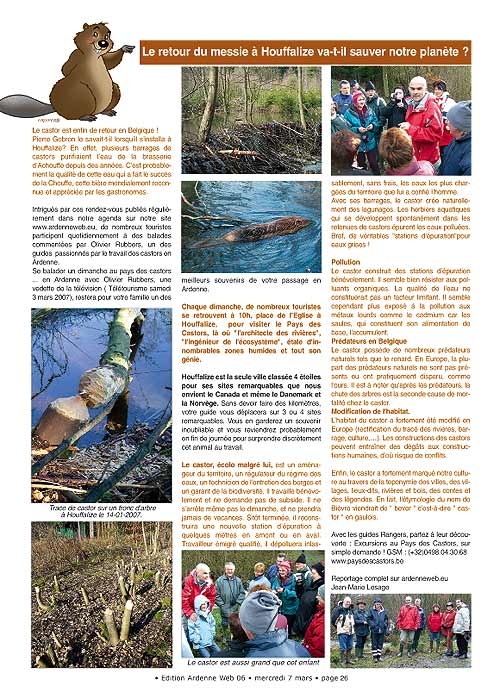 Vu la polémique enregistrée suite à l’édition du magazine du mercredi 7 mars 2007, voici une correction au premier paragraphe page 26 , edition aw06, qui parle de castors et de l'eau utilisée pour fabriquer la chouffe.