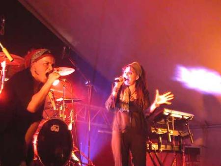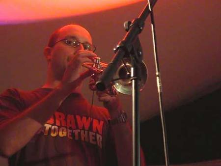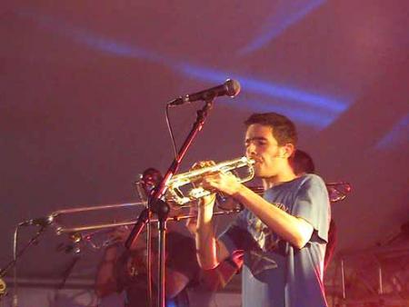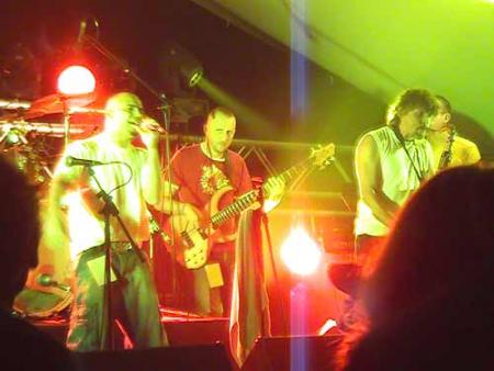 « Skaïra » fait ensuite son entrée vers 22h45. Ce groupe composé de 2 trompettistes, un tromboniste, 2 guitaristes/chanteurs un bassiste et un batteur, a mis le feu avec ses compositions très rapides et dansantes. Ce groupe, ayant fait une collaboration avec « Poulycroc » et « Le grand JOJO », s’est formé en 2001 et a déjà 2 albums à son actif.