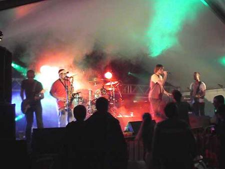 A 21h30 le premier groupe monta sur scène : « Mambassa B.B. ». N’ayant plus de batteur depuis 1997, ils s’en sont sortis de façon impressionnante avec une boite à rythme. Parcourant les chansons de leurs 10 albums, ils ont également joué quelques reprises. C’est là qu’on voit que le ska punk, ça déménage, eh oui, des danseurs s’en donnaient à cœur joie.