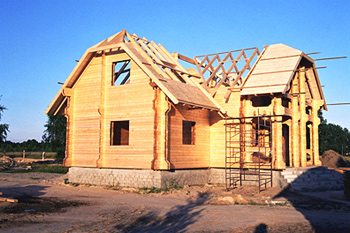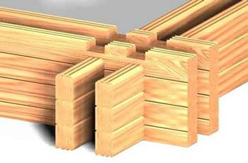 Construction des murs externes de madriers moulurés en Sapin Blanc du Nord, selon la technologie, (doubles) 2x70mm.