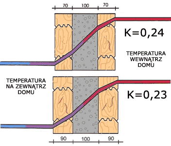 Le système de double mur de madriers moulurés de 2x70 plus 100 mm de couche d'isolation thérmique en écofibres est considéré comme le meilleur tant pour son prix comme pour ses paramètres (K=0,24).