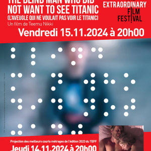 *** « L’Aveugle qui ne voulait pas voir le Titanic » (Teemu Nikki/Finlande/2021/81’/film lauréat, en 2021, du « Prix du Public », à la « Mostra de Venise » et du « Jussi du meilleur Acteur » (pour Petri Poikalainen), récompense du Cinéma finlandais, ainsi qu’en 2023, du « Grand Prix du Jury », au « TEFF », à Namur).