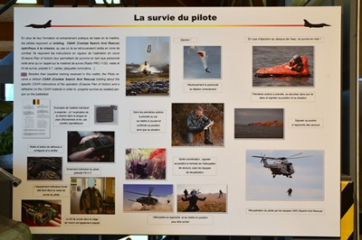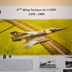 Des vitrines retracent l'histoire de la base et de son premier commandant, le colonel Lallemant DFC (Distinguished Flying Cross). Dans le hall, DH82A Tiger Moth (version d'entraînement), B-Hunter RQ-5 (drone de reconnaissance), F-84E Thunderjet, F-84F Thunderstreak, Mirage V (en version de reconnaissance) et F-16, côtoient un missile de croisière BGM-109G Griffon et sa remorque (une rareté en termes muséal).