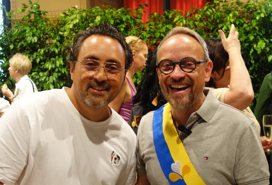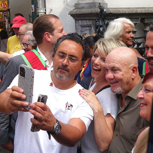 Côté masculin, c'est un comédien & humoriste, au fort accent "brusseleer", Pablo Andres Hertsens - incarnant- , notamment, un policier atypique, l'agent Verhaegen - qui a été choisi comme parrain, lui qui, "fou" de Bruxelles & de sa Foire, n'hésite pas à nous envoyer ses "bizzekes", la mascotte de la Foire du Midi demeurant Kevin Van Doorslaer, alias "Kevin le Forain", qui - étant la voix des spots radio dédié à la Foire -, est un acteur belge, élevé dans une famille de forains.
