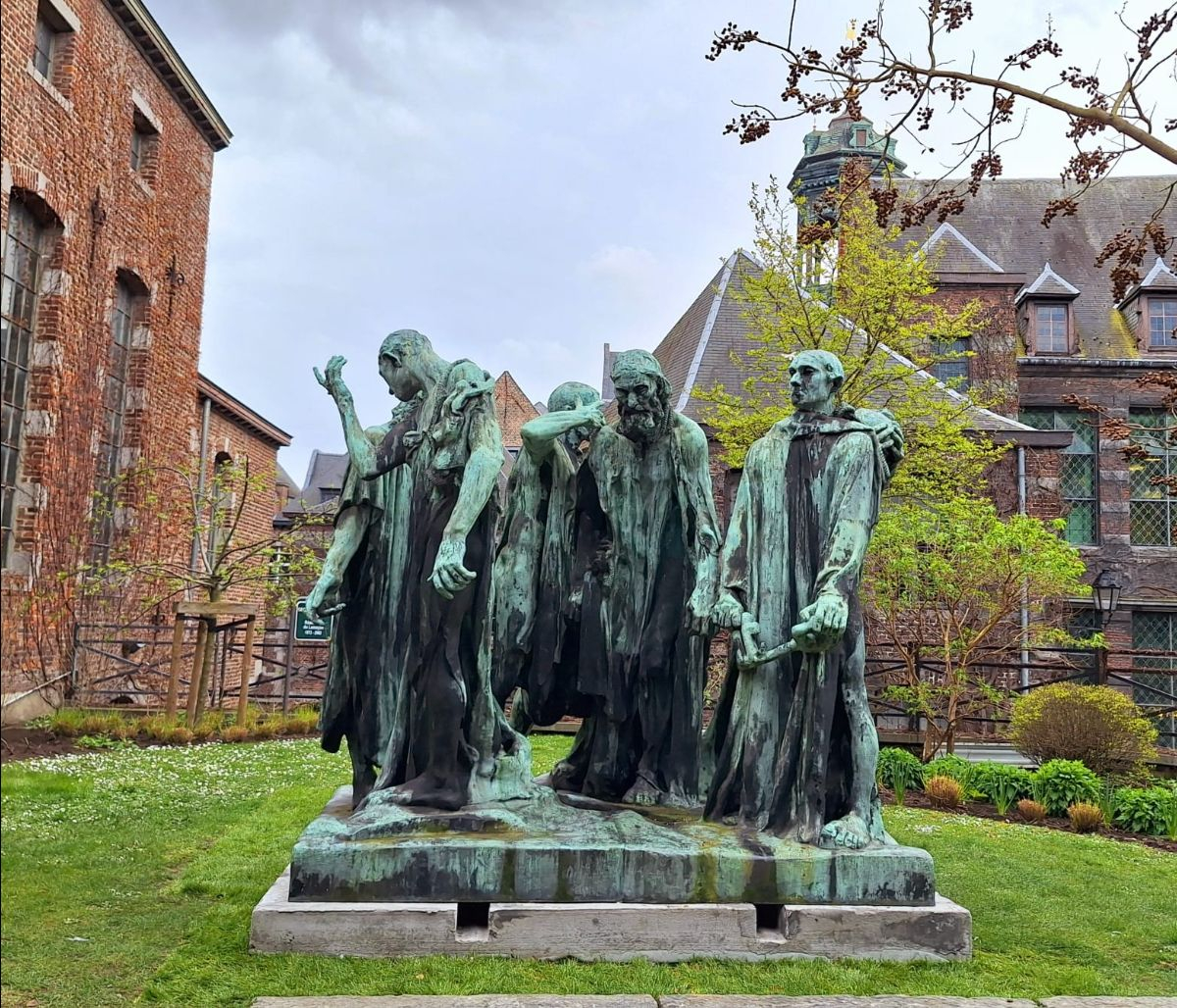 ** A souligner que, d’accès gratuit, le « Domaine de Mariemont », au croisement de la nature, de l’art et de la culture, classé « Patrimoine exceptionnel de Wallonie », un parc paysager à l’anglaise, d’une superficie de 45 hectares, abrite, au milieu d’arbres remarquables, aussi bien les ruines d’un palais du XVIIIè siècle, que des sculptures monumentales, telle un admirable Bouddah japonais, faisant face à l’entrée du musée, ou la célèbre oeuvre d’Auguste Rodin (1840-1917), récemment exposée à Mons, « Les Bourgeois de Calais » (1889/bronze).