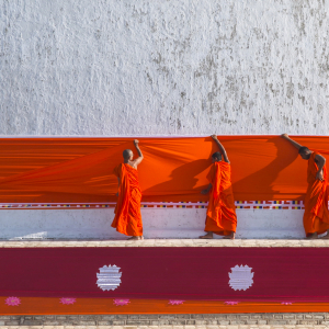 Soulignons que le bouddhisme possède différents courants, les principaux étant le « Theravada », dont le berceau serait le Sri Lanka, également répandu au Cambodge, au Laos, au Myanmar et en Thaïlande ; le « Mahayana » ou du « grand véhicule », apparut dans le Nord de l’Inde, s’étant développé en Chine, en Corée, au Japon et au Vietnam ; et le « Vajrayana » ou « bouddhisme tantrique », né en Inde, avant de gagner le Bhoutan, la Mongolie, le Népal & le Tibet.