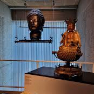 En vue de cette exposition, dès 2023, une série d’opérations de restaurations fut entreprise, sous le contrôle d’experts scientifiques, 23 pièces ayant ainsi été restaurées, dont une pièce en bois laqué : la statue du Bodhisattva Avalokiteshvara et son autel. De fait, après l’incendie du Château de Mariemont, en 1960, l’ensemble avait été démonté et mis en réserve. Si la statue avait déjà été restaurée, en 2006, ce n’était pas le cas de l’autel et de ses socles. Ces derniers présentaient des fissures, des traces d’oxydation, d’encrassement, des soulèvements et une perte de dorure. Certains éléments en bois, déformés par l’humidité, menaçaient également la stabilité de l’œuvre. Son état nécessita une campagne de restauration lourde, soutenue par le « Cercle royal des Amis de Mariemont ».