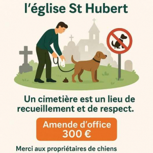 "Malgré les distributeurs de sacs Doggynet et les panneaux déjà en place, certains continuent malheureusement à considérer le cimetière comme une litière pour chiens", déplore la Commune d'Aubel dans un post partagé ce 4 juin 2025 sur sa page Facebook. Elle annonce ainsi que ce manque de civisme et de respect pour ce lieu de recueillement entraînera désormais une amende d'office de 300 €.