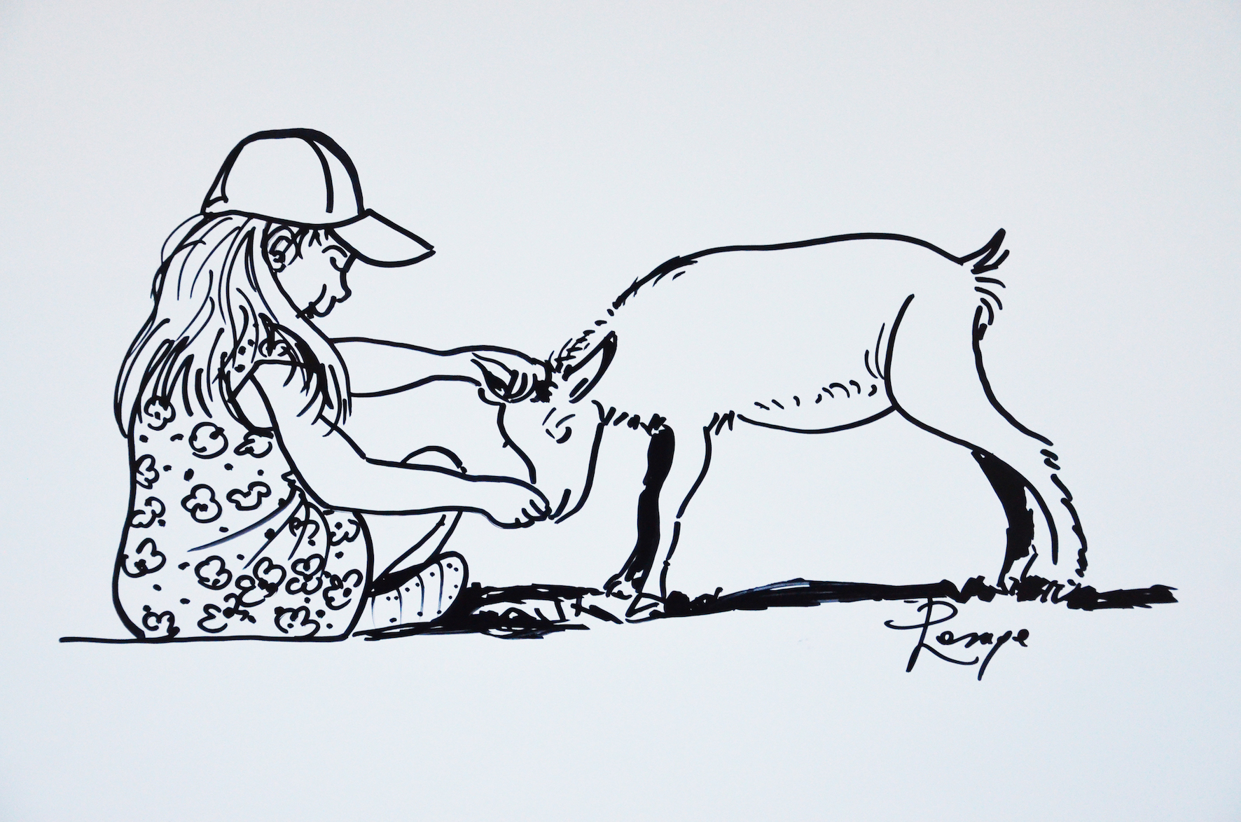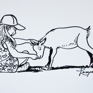 Mais la petite fille n'hésite pas, elle caresse la bikète entre les cornes.