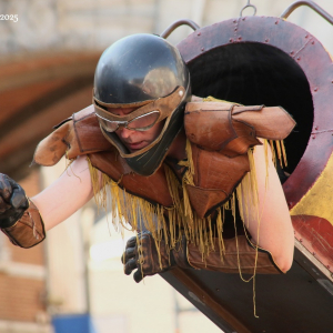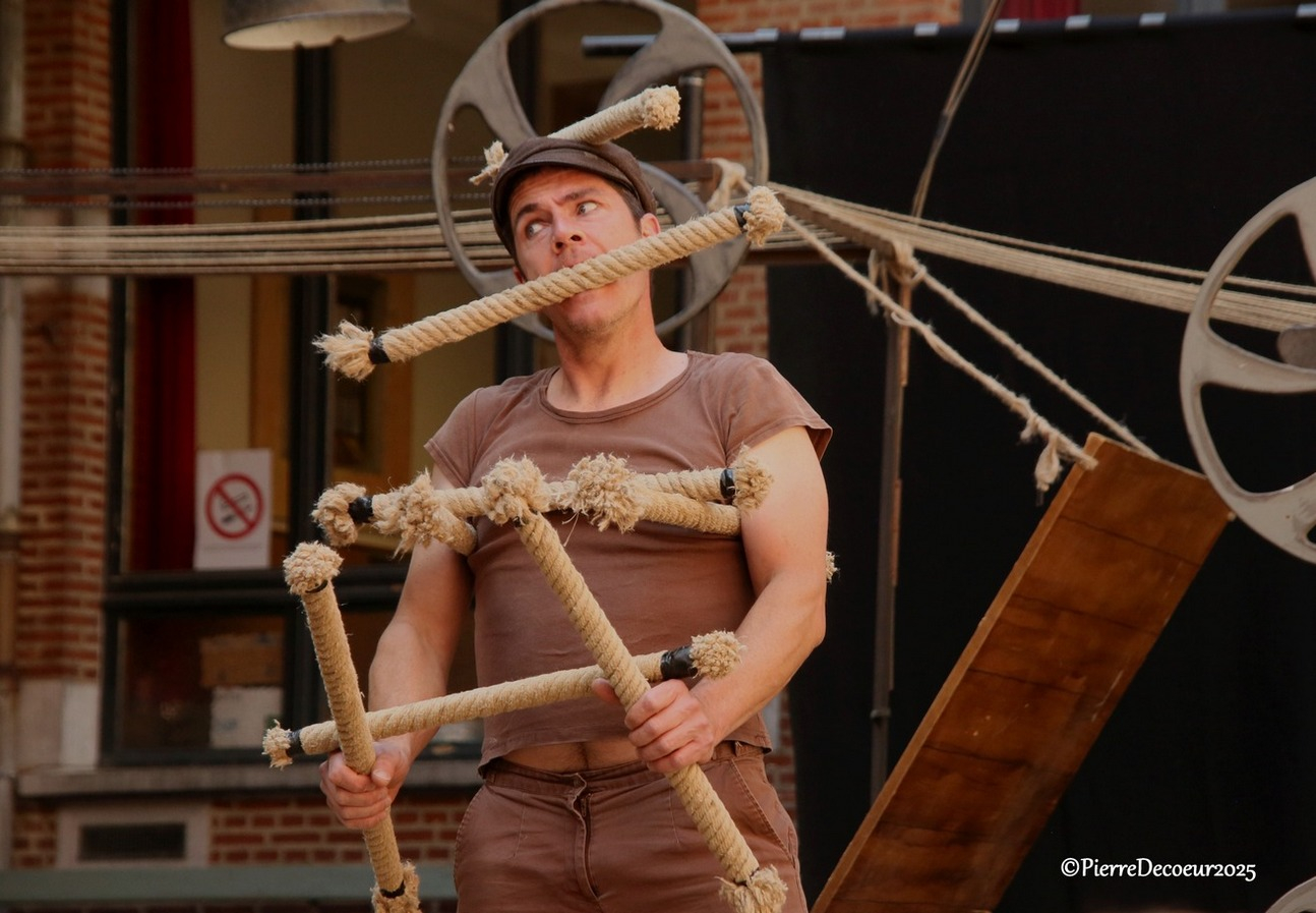 … L’organisateur, Samuel Chappel – se déplaçant sans cesse d’un spectacle à un autre, sur son vélo, avec son casque, n’hésitant pas à mouiller son maillot, pour veiller au respect des horaires, aider les bénévoles pour le contrôle des entrées et permettre l’accès aux différents spectacles à un maximum de spectateurs – nous confia : « Cette année, on a voulu questionner autant qu’émerveiller, les arts forains étant un formidable terrain d’expérimentation, qui permet de faire bouger les idées, les lignes et les regards. les spectateurs repartant avec une affiche, une carte postale,… mais aussi des réflexions. »