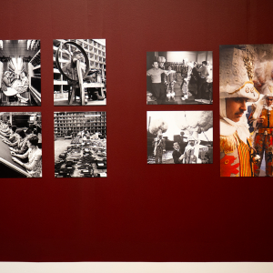 Ainsi, successivement, nous découvrons les sections : « Enfance » (70 photographies), « Ateliers d’Artistes » (40), « Face à l’Oeuvre » (22), « Tirages, Collages & Bricolages » (16 photos & collages originaux), « Les Années   ‘Vogue’» (40 photos), « Ecrivains » (30), « Bistrots » (30), « Gravités » (70), « Banlieues » (35) & « Rencontres »  (18), sans oublier « La Belgique sur Commande », conçue spécialement pour « La Boverie », avec 45 clichés de l’ « Expo 58 », à Bruxelles ; du sculpteur français d’origine hongroise Nicolas Schöffer (1912-1992), de passage à  Liège  (1962) ; de l’écrivain liégeois Georges Simenon (1903-1989) ; de la tour cybernétique, aux hauts fourneaux, à Liège ; de la Ville de Brugge ; des « Gilles », à Binche ; …