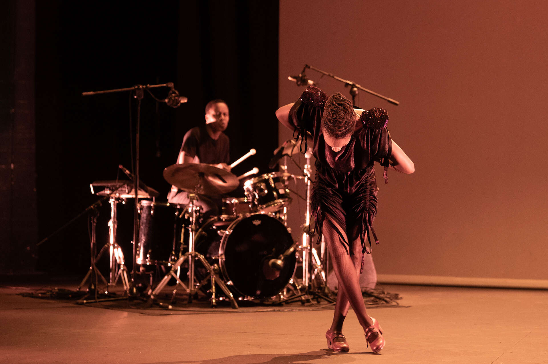 Née à Londres, de parents ghanéens et jamaïcains, formée au flamenco en Andalousie, elle ressent physiquement l’empreinte de cultures mêlées. Son corps devient un lieu de dialogue entre influences espagnoles, anglaises & ghanéennes, entre mémoire et effacement. Sur scène, elle convoque « Miss LaLa », artiste de cirque afrodescendante immortalisée par Edgar Degas (1834-1917), & transforme le camouflage en acte de résistance.