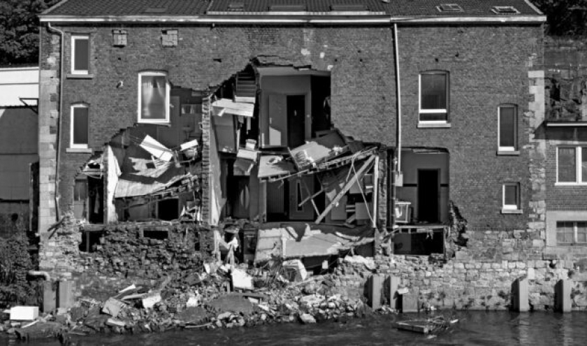 Dans la salle principale, retour, en noir et blanc, sur les inondations qui ont frappé le sud de la Belgique, durant l’été 2021, ayant provoqué des dégâts humains et matériels sans précédent.