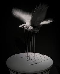 A quelques mètres de là, nous trouvons « Crow » (2025), un corbeau, déployant ses ailes, qui, bénéficiant d’un mécanisme ingénieux, crée l’illusion de son envol.