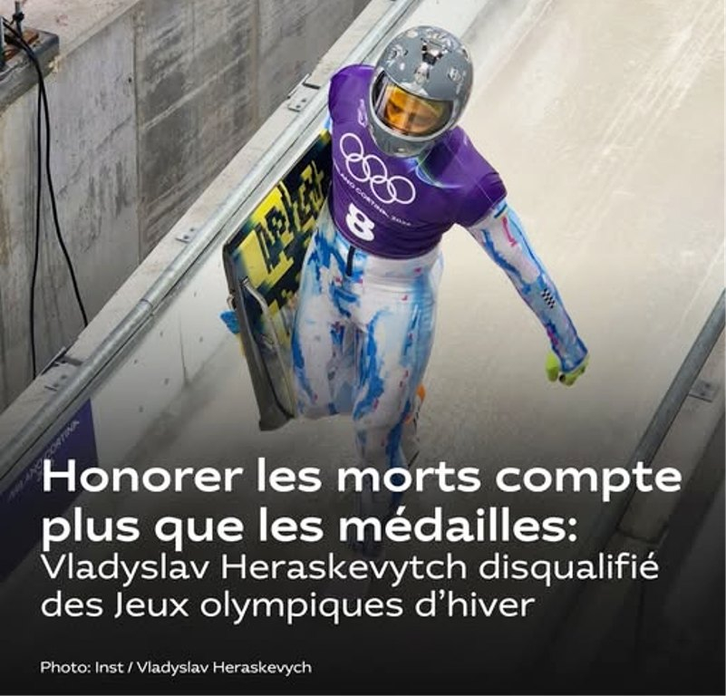 Le skeletoneur, Vladyslav Heraskevytch, a été disqualifié après avoir refusé de concourir sans son casque portant les portraits d’athlètes ukrainiens tués par la Russie. Le CIO a déclaré que la décision avait été prise parce que le casque n’était pas conforme aux règles de compétition.