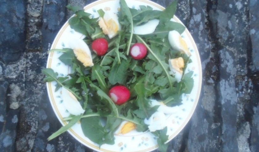 Suggestion. Illustration. Petite salade de lapin, trois radis, quelques morceaux d'œufs durs. Et bien sûr la vinaigrette.