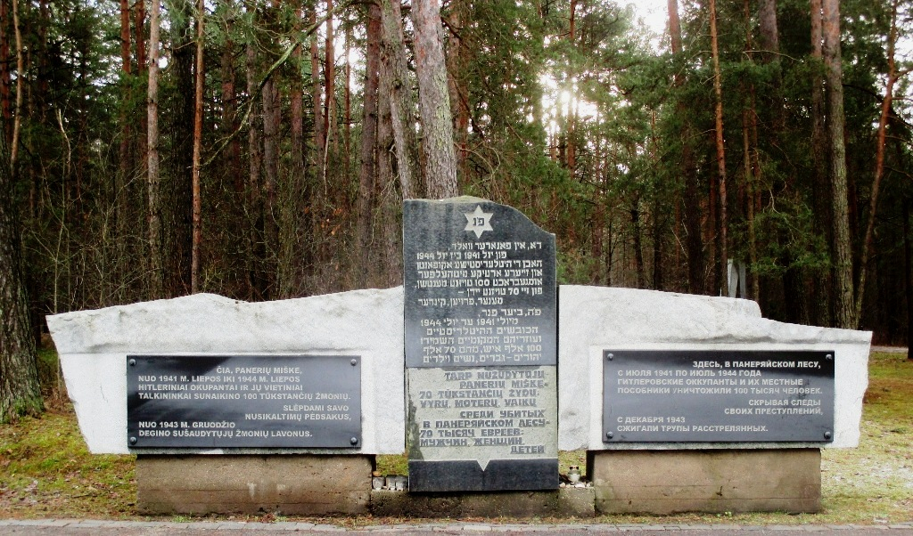 Le massacre de Ponary ou massacre de Paneriai est le meurtre de masse de 100 000 personnes, principalement des Juifs, des Polonais et des Russes, par les SD et SS allemands et les escadrons de la mort lituaniens, pendant la Seconde Guerre mondiale. Les meurtres ont eu lieu entre juillet 1941 et août 1944 près de la gare de Ponary (aujourd’hui Paneriai), une banlieue de l’actuelle Vilnius, en Lituanie. 70 000 Juifs ont été assassinés à Ponary, ainsi que jusqu’à 2 000 Polonais, 8 000 prisonniers de guerre soviétiques, la plupart d’entre eux originaires de la ville voisine de Vilnius, et de son ghetto de Vilna nouvellement formé.