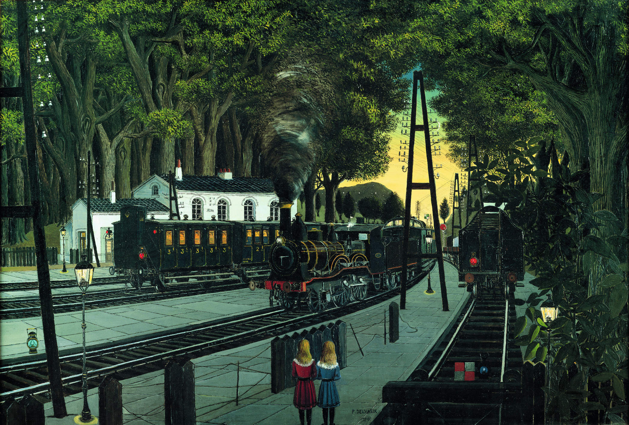 De Smet (1877-1943), James Ensor (1860-1949), René Magritte (1898-1967), Amedeo Modigliani (1884-1920), Constant Permeke (1886-1952), Pablo Picasso (1881-1973) ou encore Félicien Rops (1833-1898), notre attention étant, ainsi, attirée par les parentés ou les divergences entre le travail de Paul Delvaux et ceux de ses collègues.