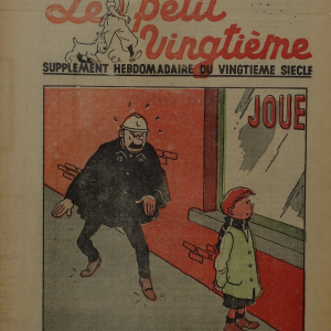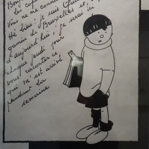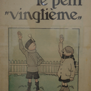 Proche de cette planche, nous trouvons une affiche du 23 janvier 1930, Quick interpellant les lecteurs du « Petit Vingtième » :« Bonjour les copains, vous ne me connaissez pas ? … Hé bien, je suis Quick, gamin de Bruxelles, et, à partir d’aujourd’hui, je suis, ici, chaque jeudi, pour vous raconter ce qui m’est arrivé pendant la semaine. »