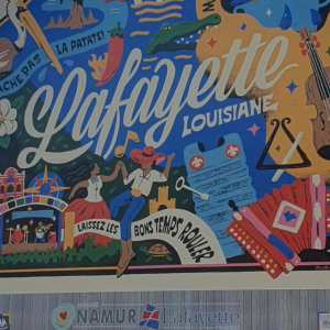 A 300m de là, dans la même rue, nous trouvons le square de la Francophonie, relié à l’esplanade namuroise de la Confluence par la passerelle cyclo-piétonne « L’Enjambée », inaugurée en 2020, alors que le samedi 20 juillet 2024, Madame le maire de Lafayette Monique Boulet & Maxime Prévot, alors bourgmestre de Namur, inaugurèrent, à l’occasion du 45è anniveraire du jumelage des deux villes, une exposition murale intitulée “Lafayette, le cœur de la Louisiane francophone”.