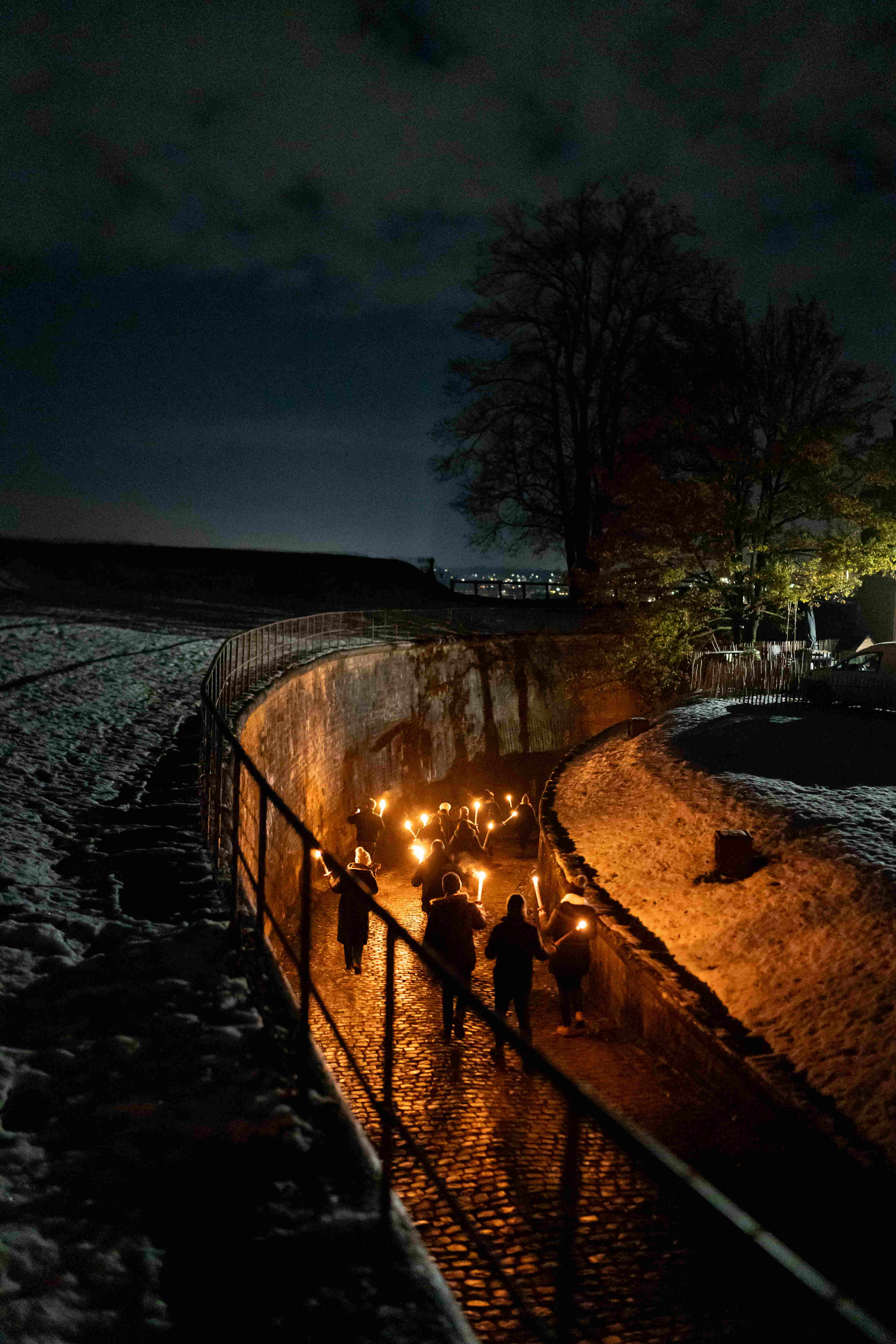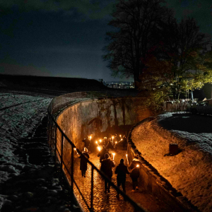 À la tombée de la nuit, la Citadelle de Namur s’illuminera, pour une "Balade aux Flambeaux" intitulée « Le Dîner du Comte », alliant histoire, théâtre et plaisirs gourmands. Lors de cette activité nocturne ponctuée de scènes théâtrales inspirées de l’époque comtale.