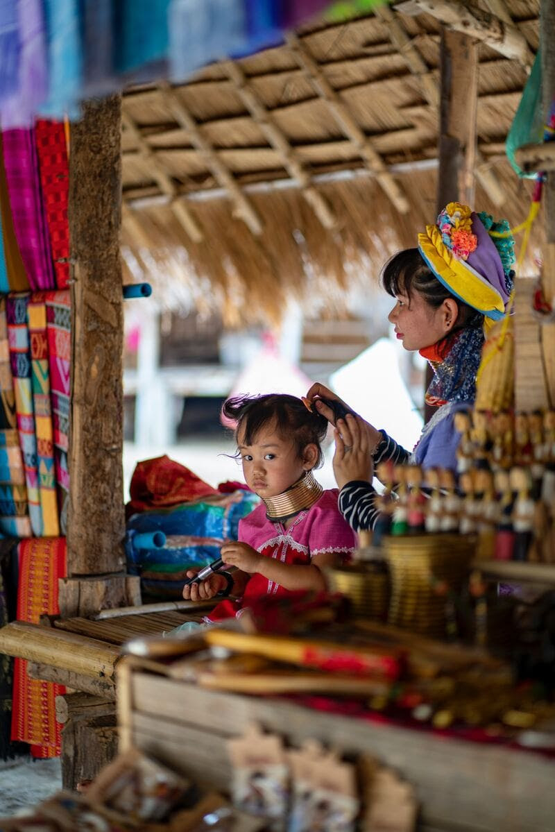 Regrettons, au passage, l’exploitation touristique de certaines femmes karen, les Padaung, plus connues sous le surnom de « femmes girafes », qui dès l’âge de 5 ans, autour du cou, portent des colliers en spirale.