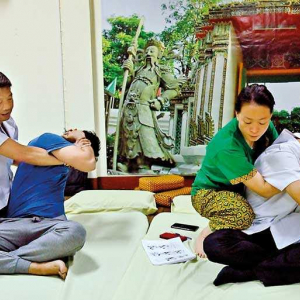 Regrettons l’image négative que certains donnent à ce pays, particulièrement accueillant, riche en orchidées, suite au passage des « G.I. » américains, à l’époque de la triste guerre du Vietnam, une époque où un certain type de massages se développa. Par contre l’art du massage traditionnel mérite un détour, parfois pratiqué, au travers des vêtements, comme sur le site du « Wat (temple) Po » (XVIe siècle/réputé pour son Bouddha couché, de 46 m de long & 15 mètres de haut), à Bangkok.