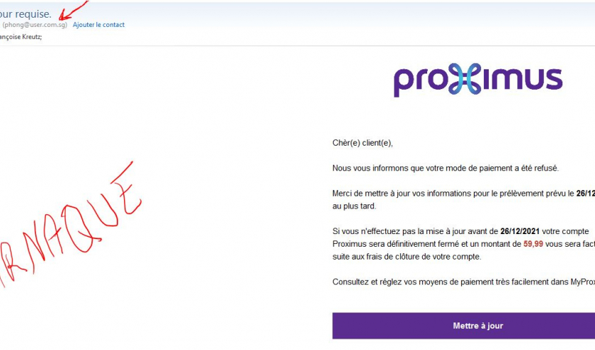 L'adresse mail expéditeur ne correspond en rien à Proximus !!!